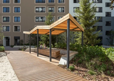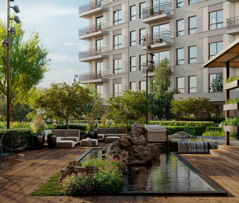 Двор в Бруснике закрыт от машин, посторонних людей и хорошо просматривается с любой точки. Дети играют и гуляют в безопасности. Во дворе растут высокие деревья и цветы. Нет ни одного темного угла.