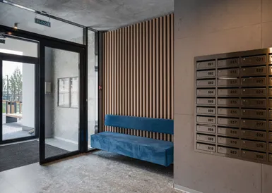 В домах Брусники прозрачные сквозные подъезды. Жители видят, что происходит внутри подъезда и снаружи во дворе. Вход находится на уровне земли. Это удобно велосипедистам, мамам с колясками и пожилым людям.