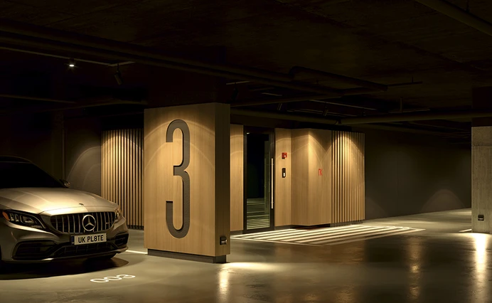 В «Туристе 2» спроектировали двухуровневую подземную welcome-зону с дизайнерским интерьером, с удобной и приятной глазу навигацией и комфортным теплым светом. Из паркинга жители смогут подняться на лифте сразу на свой этаж. На въезде — светопрозрачные ворота и системы открывания без ключа.